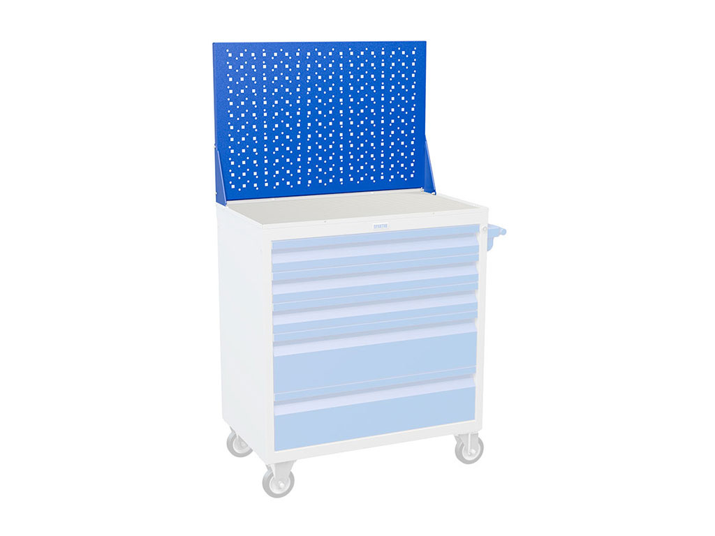 толщина стали - 1.2 мм квадратная перфорация 10х10 мм, шаг 38 мм подходит к WDS-5, WDS-6, WDS-7, WDS HARD Размеры внешние, мм (ВхШхГ): 500x746x22 Цвет: синий (RAL 5002) Тип покрытия: порошковое Производитель: Промет (Россия)