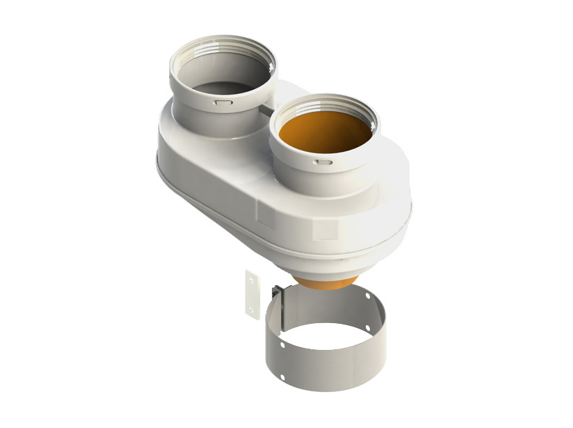 Стартовый элемент раздельного дымохода. Предназначен для установки на стандартный коаксиальный выход котла ? 60 /100 мм с целью разделения его на два подсоединения типа «мама» ? 80 мм. Служит для присоединения к настенным котлам с закрытой камерой сгорания марки Vaillant.