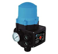 Блок автоматики с манометром используется для управления насосом, регулирования его работы и защиты от «сухого хода».