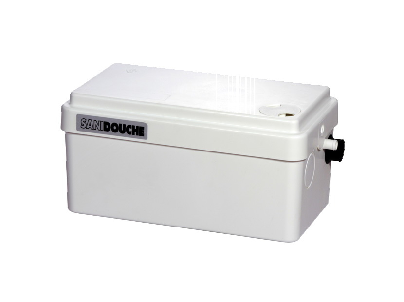 Sanidouche® Flat санитарный насос для душа с плоским сифоном. Sanidouche® Flat возможно установить с низким душевым поддоном с помощью плоского сифона, входящего в комплект.