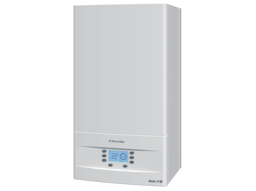 GCB 24 Basic X Fi – двухконтурный настенный газовый котел с открытой камерой сгорания от компании «Electrolux» (Швеция). Предназначен для небольших систем отопления и горячего водоснабжения. Оснащен битермическим теплообменником, который совмещает два контура – отопления и горячего водоснабжения и открытой камерой сгорания с естественной системой дымоудаления. Система дистанционного беспроводного управления позволяет контролировать работу котла на расстоянии, а с помощью системы программирования можно задать режим работы котла на каждый час в течение недели. Встроенная система погодозависимого управления поддерживает температуру в помещении на заданном уровне вне зависимости от внешних климатических изменений. Система адаптации к малым системам отопления с электронной модуляцией позволяет поддерживать комфортную температуру даже в маленьких помещениях поэтому котлы рекомендованы для поквартирного отопления.