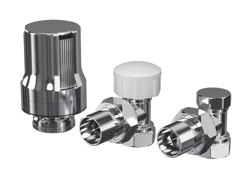 Состав: Термостатическая головка жидкостная, вентиль термостатический 1/2" прямой, вентиль на обратную подводку 1/2" прямой