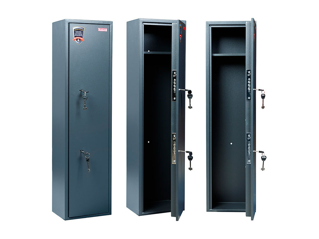 Принадлежит к категории охотничьих сейфов высокого качества, отличающихся вполне демократичной ценой. Такой сейф следует приобретать, если вас интересует комфортное размещение двух единиц длинноствольного оружия с длиной ствола не более 1.22 метра. Надёжность сейфовой линии Беркут подтверждена сертификатом ГОСТ Р 55148-2012 на устойчивость к взлому; также изделие по всем характеристикам отвечает требованиям МВД РФ к хранению огнестрельного оружия и боеприпасов. Сейф Беркут-1 прекрасно подойдёт для использования как в частном доме, так и в служебном помещении.