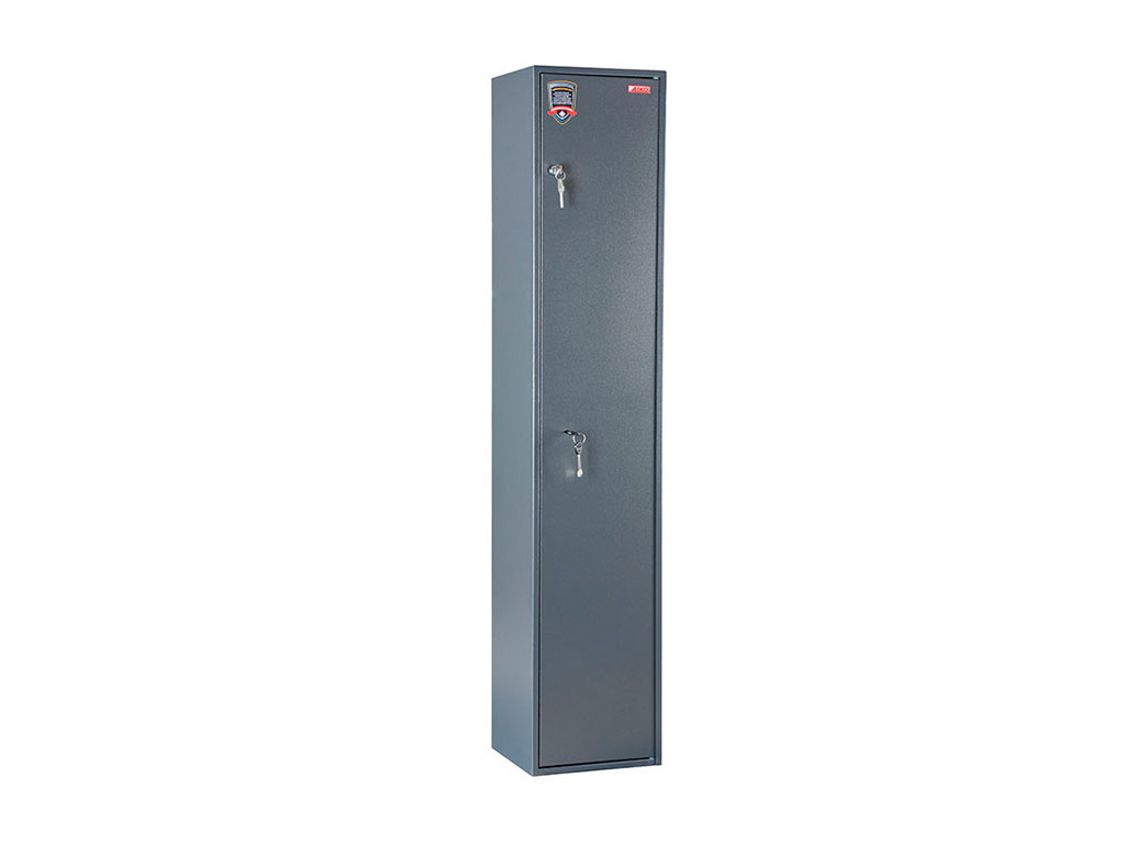 Поверхность оружейного шкафа обработана качественным защитным составом; цветовой дизайн – нейтральный тёмно-серый оттенок.
