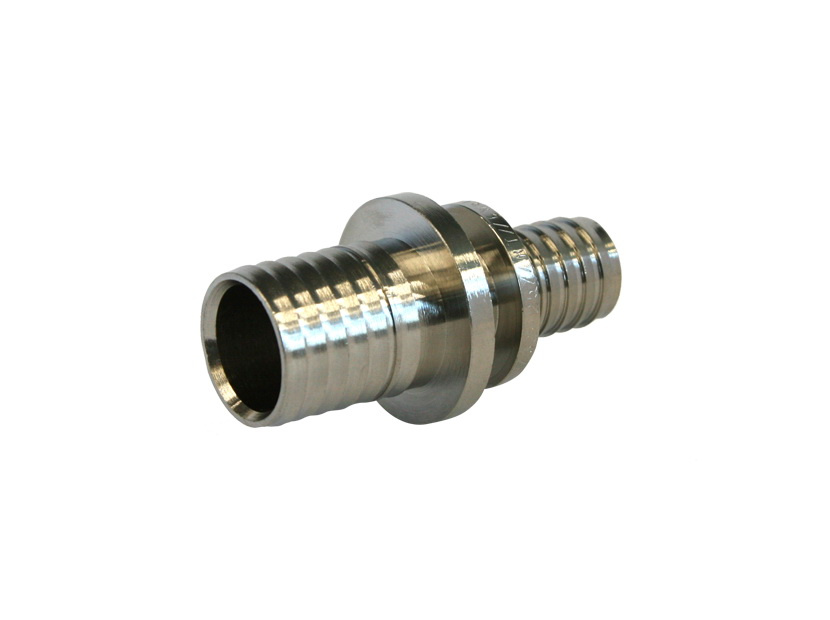 Ассортимент фитингов системы трубопроводов AXIOpress включает в себя два вида пресс-втулок: для запрессовки универсальной металлополимерной трубы и для запрессовки труб из сшитого полиэтилена. Все пресс-втулки изготовленных из латуни марки CW617N. Корпус фитингов покрыт никелем. Такое покрытие имеет эстетическое преимущество – фитинг, установленный на открытых участках системы, со временем не потемнеет и не потеряет своего первоначального вида. Каждая пресс-втулка имеет маркировку на корпусе с указанием артикула и диаметра соединения.