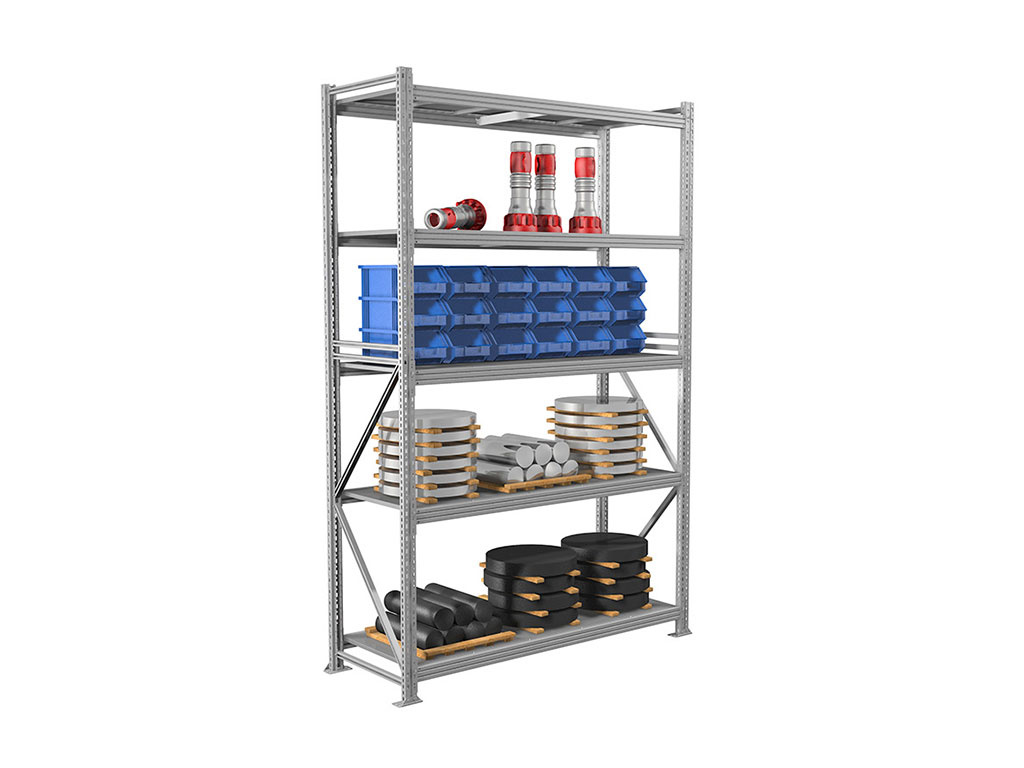 - Среднегрузовой стеллаж MS Pro 5 ярусов с металлическим настилом.