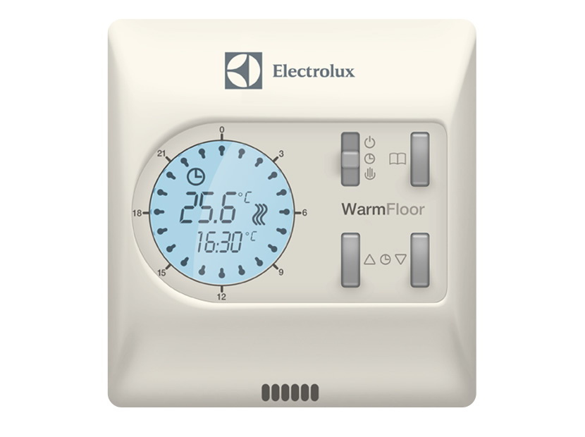 Программируемый электронный терморегулятор с жидкокристаллическим дисплеем позволяет устанавливать индивидуальные температурные режимы в течение суток.