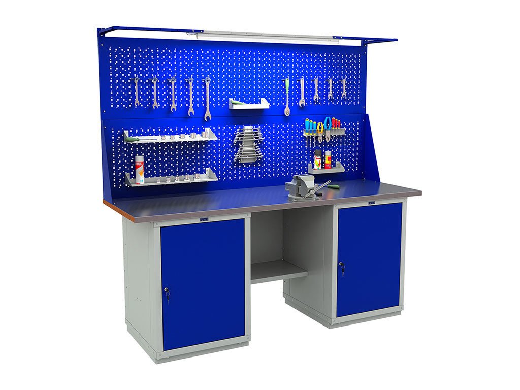 - дополнительно верстак можно укомплектовать перфорированным экраном соответствующего размера, светодиодным освещением и аксессуарами для инструментов.